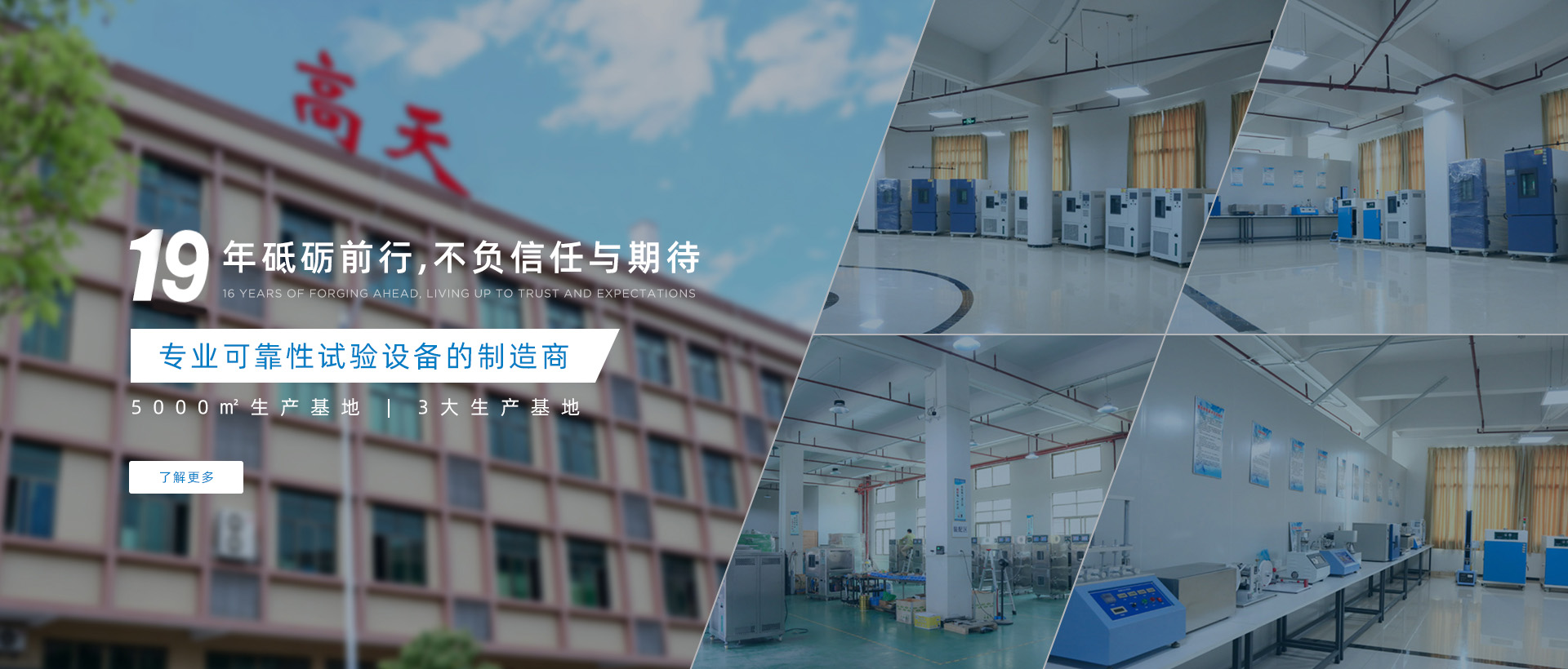 東莞市高天試驗(yàn)設(shè)備有限公司是一家可靠性試驗(yàn)設(shè)備的制造商,我們專注于可靠性試驗(yàn)已有19余年,在此期間,我們竭盡所能,努力為客戶提供完善的實(shí)驗(yàn)室規(guī)劃方案,匹配質(zhì)優(yōu)價(jià)廉的試驗(yàn)設(shè)備。高天擁有完整的研發(fā)團(tuán)隊(duì),其中有很多人都躋身試驗(yàn)設(shè)備行業(yè)多年,能為顧客提供完善的技術(shù)方案,以幫助廣大客戶在確保其產(chǎn)品品質(zhì)的前提下,有效降低經(jīng)營(yíng)成本,提升經(jīng)營(yíng)競(jìng)爭(zhēng)優(yōu)勢(shì)。高天生產(chǎn)的設(shè)備種類眾多,同時(shí)擁有實(shí)用新型專利證書,銷售范圍覆蓋全國(guó)。公司自成立以來(lái)堅(jiān)決以精美的外觀設(shè)計(jì),認(rèn)真務(wù)實(shí)的工作精神,良好周到的后續(xù)服務(wù),贏得了客戶良好的口碑。我們將一如既往,堅(jiān)持以“誠(chéng)信經(jīng)營(yíng)”為...